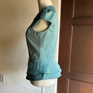 KARO RINLAN | Y2K Vintage Ice Blue Zip Up Zipper Trim Peplum Top | Approx Sz S