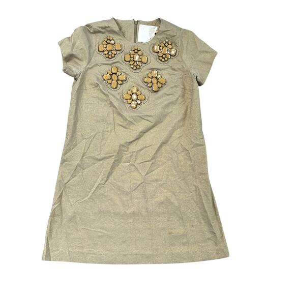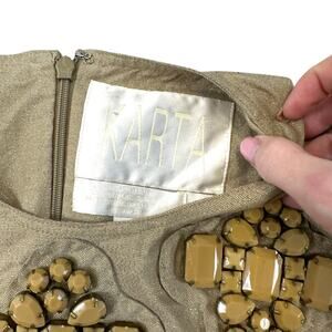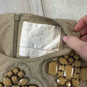 KARTA Shift Dress Gold Metallic Chunky Beads Short Medium Party Glam