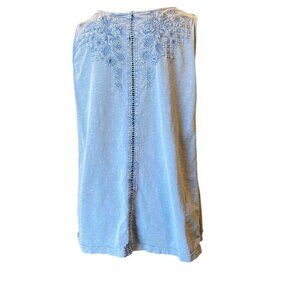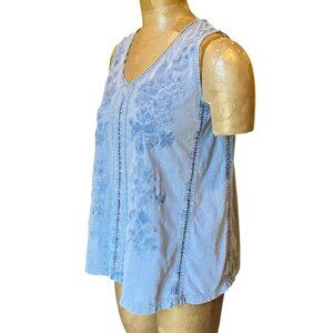 The KARYN SEO Handmade BOHO Sleeveless Embroidered Ladder Lace Top in size S is a stylish and comfortable addition to any woman's wardrobe. Made from 100% cotton, this blue top features a V-neckline, pullover closure, and a relaxed fit, making it perfect for travel or casual occasions. The embroidered ladder lace accents add a touch of bohemian flair, while the lightweight and breathable material ensures you stay cool during the summer and spring seasons. Handmade with care in India, this top embodies a coastal, indie, retro, and hipster aesthetic that is both unique and trendy.