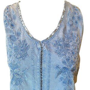 Description: Handmade BOHO Sleeveless Embroidererd Flowers and Ladder Lace Top