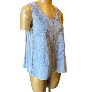 KARYN SEO Handmade BOHO Sleeveless Embroidererd Ladder Lace Top Sz S #236K