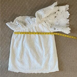 KAS New York Dulia White Floral Eyelet Lace One Shoulder Blouse, Sz S/M