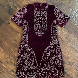 Deep magenta velvet dress with embroidery from Nordstrom.