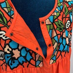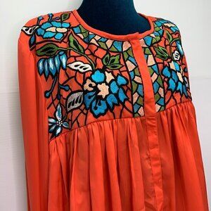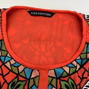 KAS New York Malo Blouse Large Embroidered Ruffle Boho Stained Glass Top