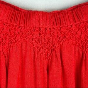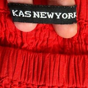 KAS New York Red Smocked Cold Shoulder Boho Top S