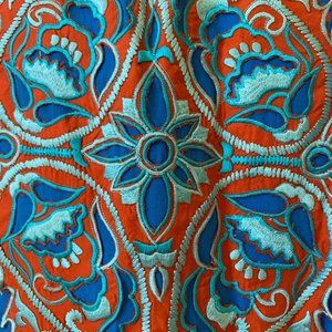 Orange and blue KAS NY Dress. Side zipper. Large. 100% cotton shell and lining. Never worn, tags still on. 100% rayon shell.