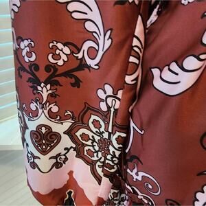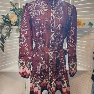 KASIA NEW SILK LIKE GEOMETRIC PEPLUM TIE FRONT DRESS SIZE SMALL RETAIL $187.00