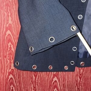 Stylish blue suit set featuring eyelet details. Includes a jacket and pants.