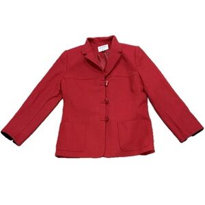 π§₯π KASPER A.S.L. 90s Red Wool Equestrian Blazer | Black Trim Vintage Sz 12
