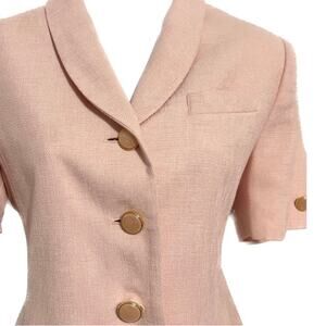 Tags: 80s 90s Y2K Pencil Skirt Knee Length Dainty Jackie O Bows Elle Wood Vintage VTG Work Business Summer Spring Working Business Matching Set Women Woman Ladies Pink Pastel Elegant Regal Kennedy Jacket Suit