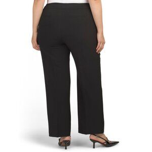 Brand New Color: Black fabric provides stretch, elastic waistband, lightweight and breathable regular length, wide leg, 2 side pockets, 2 back pockets high rise waist zip fly with button and hook closure inseam: 32in, taken from size 14 polyester/elastane imported machine wash