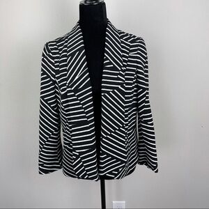 KASPER Black White Geometrical Print Open front drape detail suit jacket size 6P