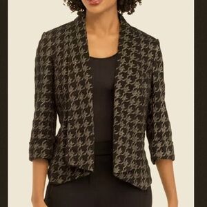 KASPER Black and Gold Houndstooth Open Blazer Retro Vibes Disco Sz Small