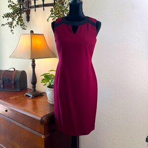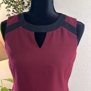 KASPER | Burgundy and Black Dress with Keyhole | Size 2P