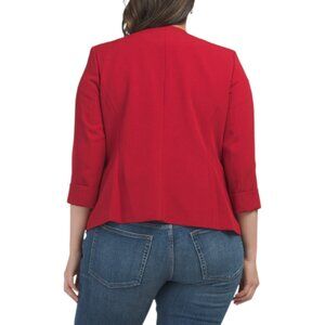 fixed rolled cuffs, 2 faux front pockets, button accents, lightly padded shoulders, fabric provides stretch
