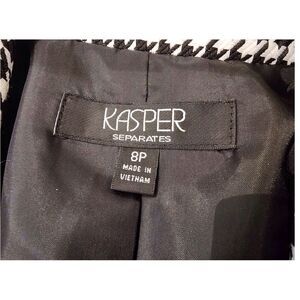 KASPER Houndstooth Blazer Size 8P Women's Black White Suit Coat Jacket Ladies