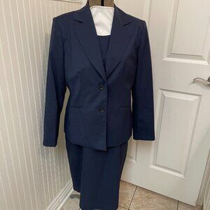 KASPER NAVY SUIT WITH SHEATH DRESS AND JACKET, SIZE 12