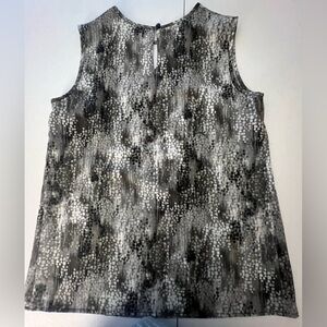 Chic sleeveless blouse with a modern black, white and gray pattern. 100% polyester. One button closure in back. NWOT