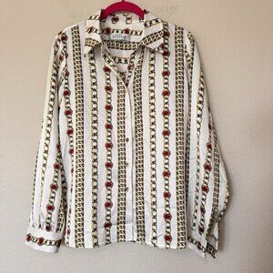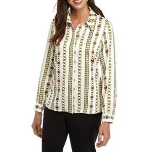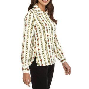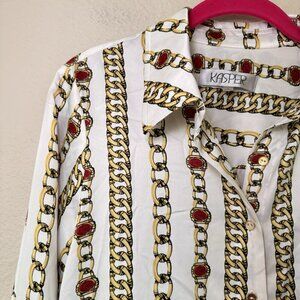 KASPER WHITE CAREER BLOUSE SIZE 4 $79 Gold Chain Design Womens Button Front