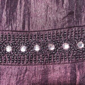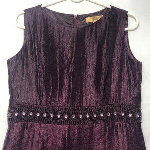 KASPER Women Sleeveless Beaded Waist Burgundy Satin Dress Size 10