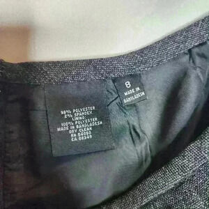 In excellent pre-owned condition. No flaws. Heathered gray. Lined. No stretch. Measurements are approximate and taken flat.