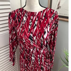 KASPER Womens Dress Large Red Abstract Print Surplice Stretch Cocktail Travel