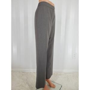 Fabulous gray dress pants features a front zipper and inside button and hook closure. These pants are fully lined and do not have pockets. These are a straight leg and are a high rise. Don't miss out on these gray Kasper dress pants.