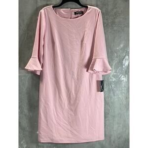 KASPER Women's Salmon Pink 3/4 Ruffle-Sleeve Sheath Knee-Length Dress SZ 10
