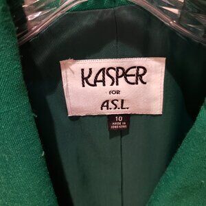Here is a beautiful green jacket by KASPER - Size 10 and Made in Hong Kong