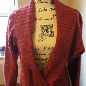 KASPER RED KNIT COZY OPEN FRONT CARDIGAN SIZE MEDIUM