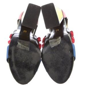 KAT MACONIE Aya Bird Ruffle Sequin Heeled Sandal Block Heel Multicolor Leather
