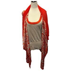 KATE & MALLORY XLARGE Jacquard Cardigan Sweater & Knit Tunic SET Orange Beige