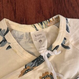 Adorable and super soft Kate Quinn floral wrap onesie in size 0–3 months, brand new with tags. Features a buttery yellow base with golden + slate floral print, adjustable wrap front, and snap-bottom closure for easy diaper changes. Made from Kate Quinn’s signature premium organic cotton — gentle on newborn skin and perfect for coming home outfits, photos, or everyday wear.