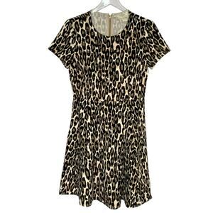 KATE SPADE 10 Autumn Leopard Dress Tan Brown Fit Flare Mini Ponte