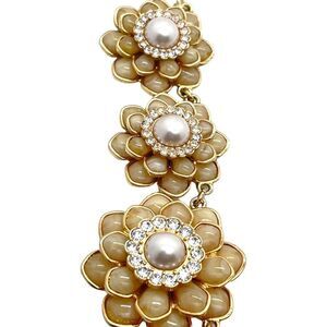 KATE SPADE 12k Gold Plated Zinnia Flower Floral 3D Rare Crystal & Faux Pearl Nec