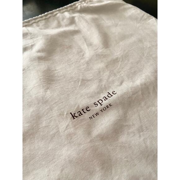 KATE SPADE 17"x17" White Dust Bag w/Logo Print. Featuring a white cotton fabric w/black logo print and a black drawstring closure. *(Note: Marking on interior (as photo shows) but overall in great condition).