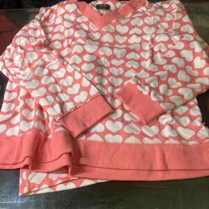 KATE SPADE 2pc Pajama Set All Over Heart Soft Vneck Straight Leg Pants Womens L