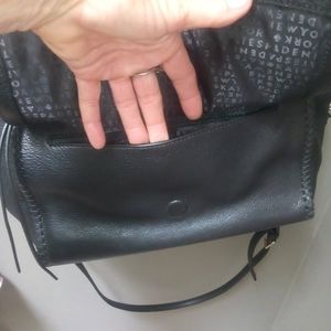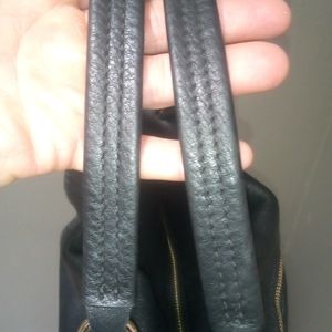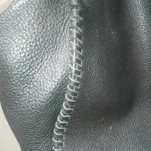 Brand new condition, black leather , clean and this bag can hold a lot it got zipper pocket inside and one on front of bag and a snap pocket in front