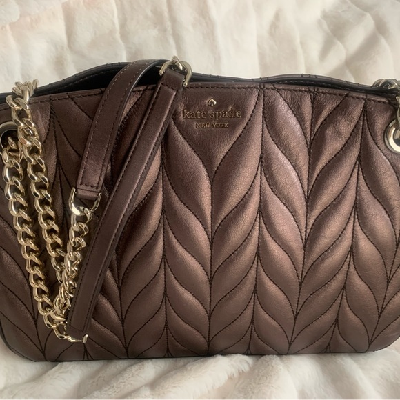 Kate Spade Briar Lane Quilted Leather Shoulder Bag Metallic Oak Style WKRU6157