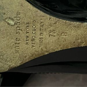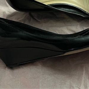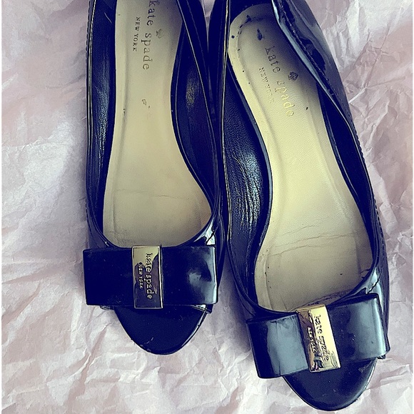Black, low heeled, peep toe wedges from the ♠️ Kate Spade Collection ♠️ They are in gently loved condition. They are a Size 7 1/2B