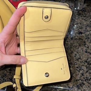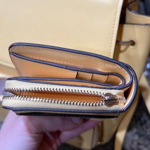 Gently used. Wallet is included and is in great condition as far as leather and interior parts of the wallet however the zipper tap part is missing but the zipper itself works.