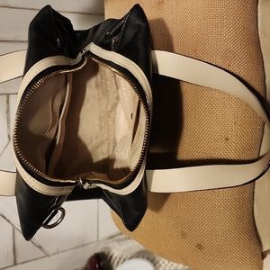 this is a super buttery soft black leather bowlers bag that is a standard Tote but can be worn as crossbody. It has one huge interior zipper pocket and 3 leather trimmed compartments on the opposite side. This bag has tons of room to carry whatever you need and then some! Check out my listing for the cute Kate Spade card holder/wallet that will go great with this bag and add just the right amount of sparkle to the look! Add the two together in a bundle and shoot me an offer!