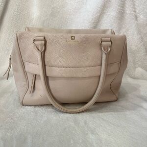 KATE SPADE PURSE :This is a beautiful beige leather Kate Spade bag. It is in good condition except - little scrape on the edge’s as seen in pics . It is hardly noticeable. It is a nice soft leather.