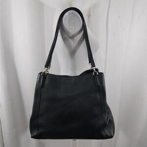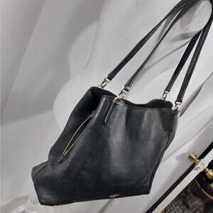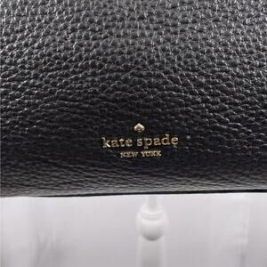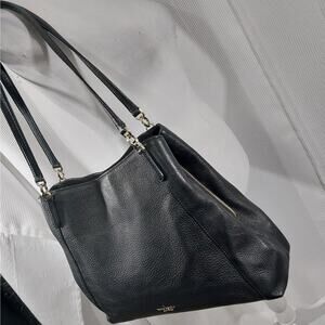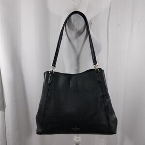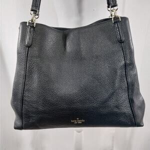 From Kate Spade comes this awesome black genuine leather bag, purse, handbag, with a pebbled textured finish! It features a gold logo front, and double straps! Inside: 3 compartments: one, a zipper closure, separates 2 more with magnetic closures! Side zipper pocket in one section! Gold hardware! Measures: 14" x 12" x 4", straps measure: 24" with an 11.5" drop! It's just a gorgeous, elegant bag! Used rarely! Excellent! Superb EUC Condition! **ABSOLUTELY GUARANTEED CONDITION: EUC MINTY-EXCELLENT TO LIKE-NEW, by Lily @HauteClub!***
