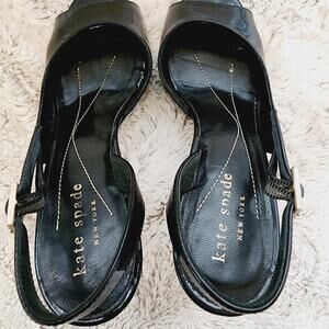 KATE SPADE BLACK STRAPPY PATENT LEATHER HEELS SIZE 6