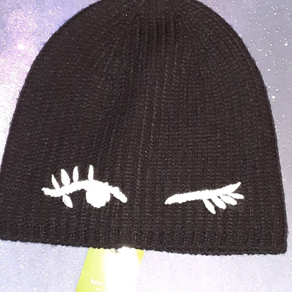 KATE SPADE BLACK WINKING BEANIE CAP