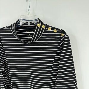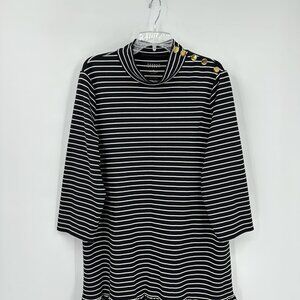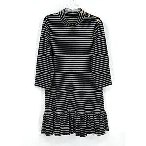 KATE SPADE BROOME STREET dress striped mini ruffle long sleeve black white XXL