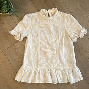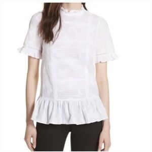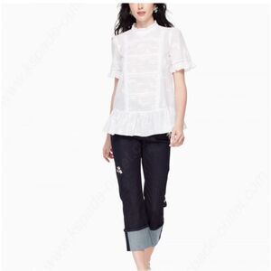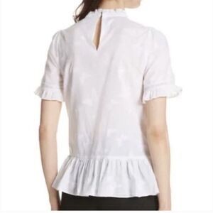 KATE SPADE BUTTERFLY CLIPPED FLOUNCE BLOUSE 100% COTTON WHITE SIZE SMALL EUC