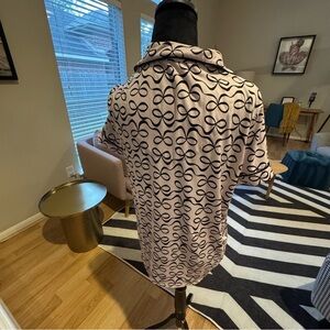 KATE SPADE Baby Pink Ribbon Bow Print Pajama Button Down Top Size Small GUC