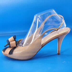 KATE SPADE Billow Peep Toe Leather Slingback Sandals Bow Tan Evening Cocktail Wedding Holiday Going Out Special Occasion Party